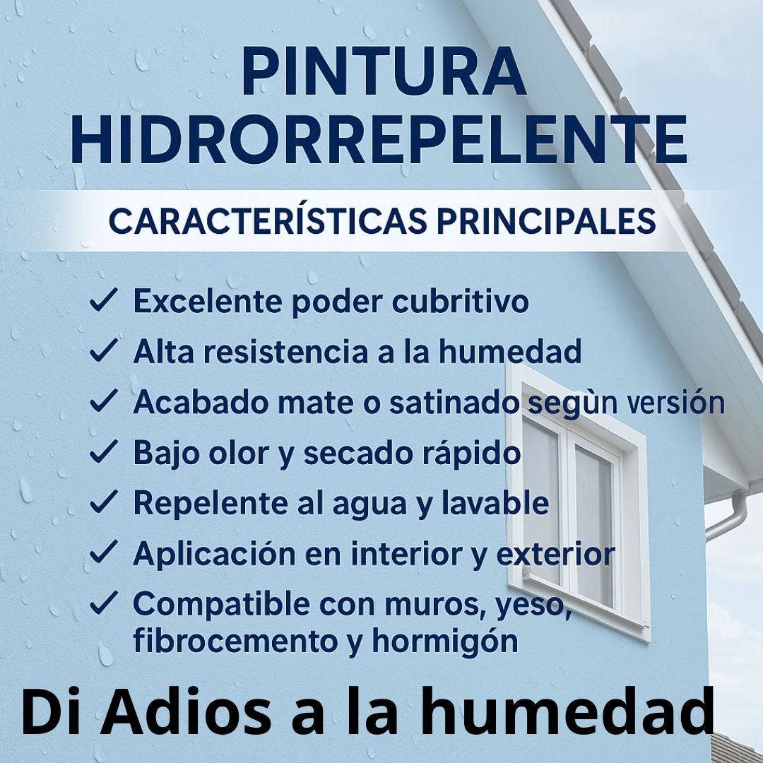 Esmalte al Agua Hidrorrepelente es una pintura decorativa y protectora formulada para resistir la humedad, manteniendo muros y superficies limpias, secas y protegidas. Su tecnología repelente evita la absorción de agua, reduce la aparición de manchas y hongos, y permite una fácil limpieza. Ideal para espacios interiores o exteriores donde se requiera durabilidad y estética al mismo tiempo.