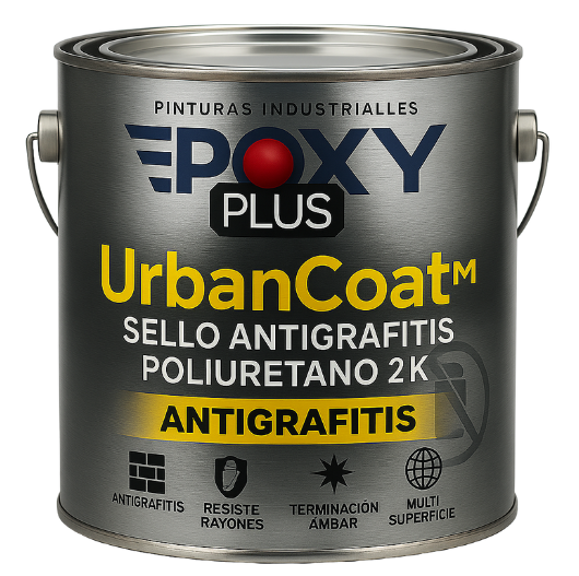 UrbanCoat™ es un sello poliuretano doble componente (2K) desarrollado por EPOXY PLUS para ofrecer protección total frente a grafitis, rayones, humedad y radiación UV. Su película ámbar satinada o mate actúa como un escudo invisible de alto desempeño, que impide la adherencia de pinturas en spray, marcadores y suciedad, permitiendo su limpieza con diluyente xileno o xilol sin dañar la superficie original. Ideal para fachadas, muros urbanos, letreros, maderas, metales y hormigones expuestos a condiciones extremas o vandalismo.